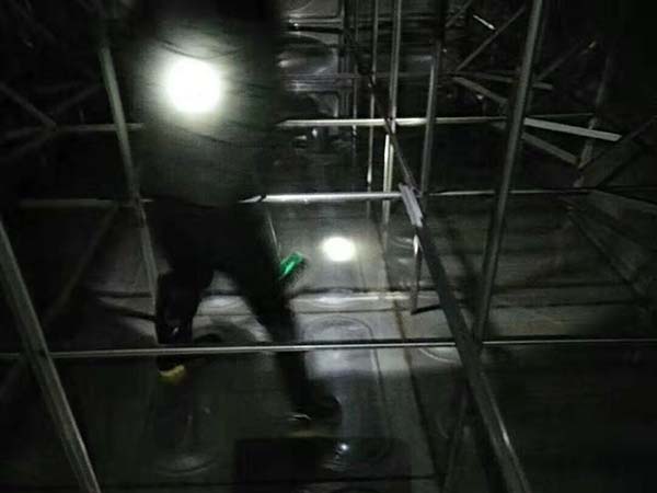 在清洗水箱的過(guò)程中,消毒人員須帶護(hù)眼鏡、口罩,如在水箱內(nèi)感到
